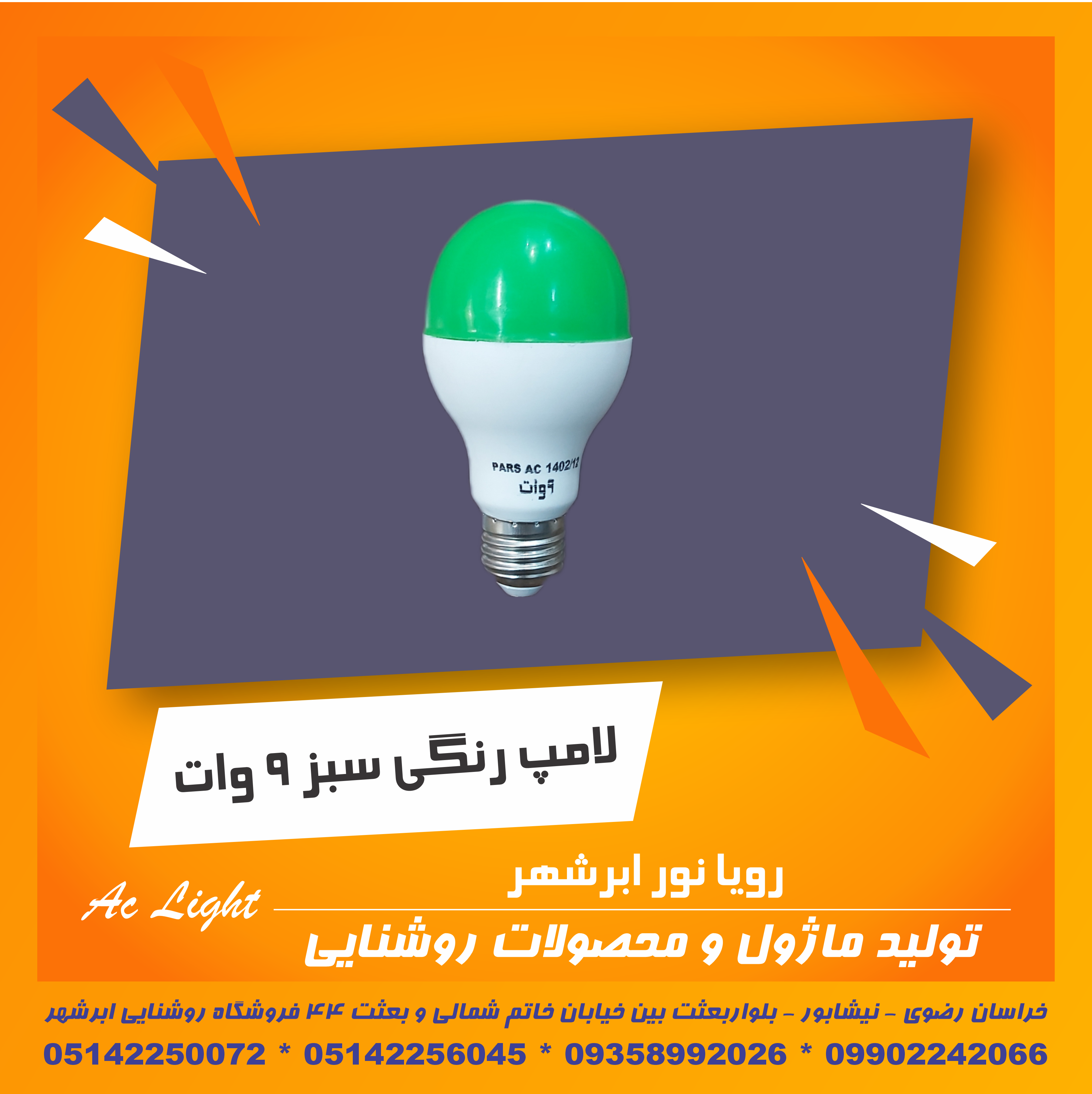 aclight لامپ رنگی 9 وات رنگ سبز کارتن 54 عددی